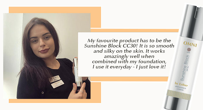Daniela: My favourite product has to be the Sunshine Block CC30! It is so smooth and silky on the skin. It works amazingly well when combined with my foundation, I use it every day - I just love it!