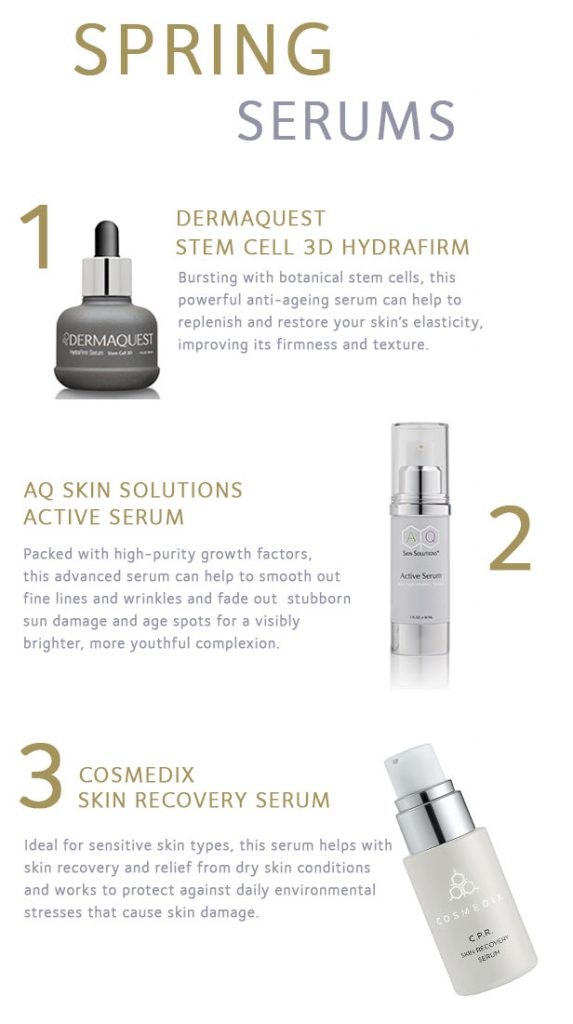 As the days become brighter and the extra layers are tucked away, we’re saying goodbye to our dry winter skin. Spring is here, and it’s time to embrace the new season. Here’s our top 3 spring serums to help get your skin feeling fresh, firm and hydrated.